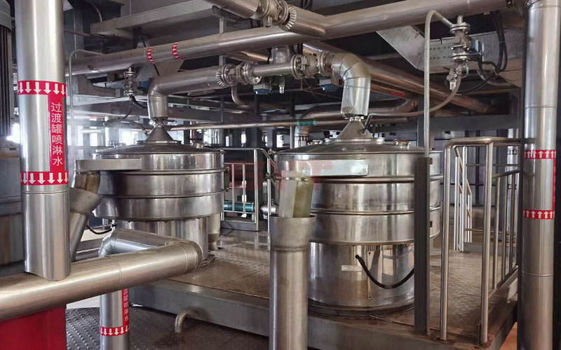 筛盖由进料口及斜锥组成,其下端与筛框相接,筛盖和筛框由卡环联接,在筛盖和筛框之间有密封垫。筛框由钢板卷焊而成,其上下端均有一承接圈,下内部设有一法兰圈,用于固定筛网组件等结构。